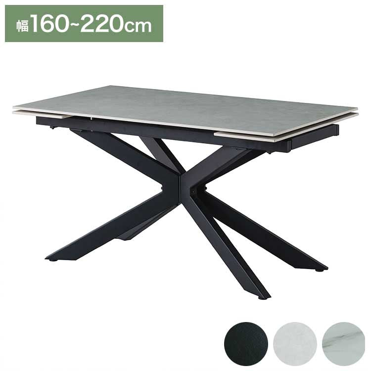 伸長式 ダイニングテーブル セラミック エクステンション 幅160~220×奥行90×高さ72cm 4人掛け 北欧 おしゃれ 単品 ダイニングテーブル 食卓 グレー ブラック モダン リビング 伸縮 伸ばせる(代引不可)