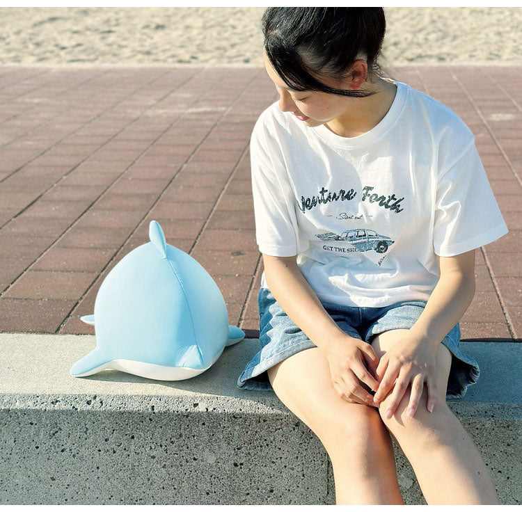 サラサラしたたっぷりな伸縮性生地と、柔肌を感じさせるパウダービーズがコロンとした可愛いイルカのフォルムと相まって、抱いたときの心地良さがたまりません!
