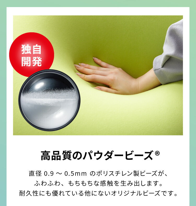 ●材質:カバー=綿89%・ポリウレタン11%/本体側地=ナイロン85%・ポリウレタン15%/中材=パウダービーズ(R)(発泡ポリスチレン)