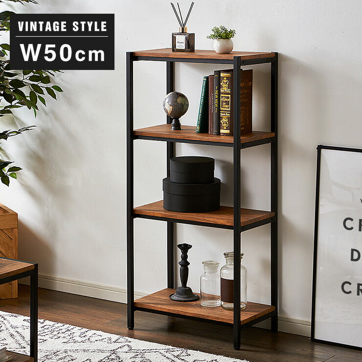 ヴィンテージ 四段ラック 4段 ラック 幅50 奥行き30 収納 オープンラック スチールラック 茶 ブラウン シェルフ 木目調 おしゃれ 棚 本棚(代引不可)