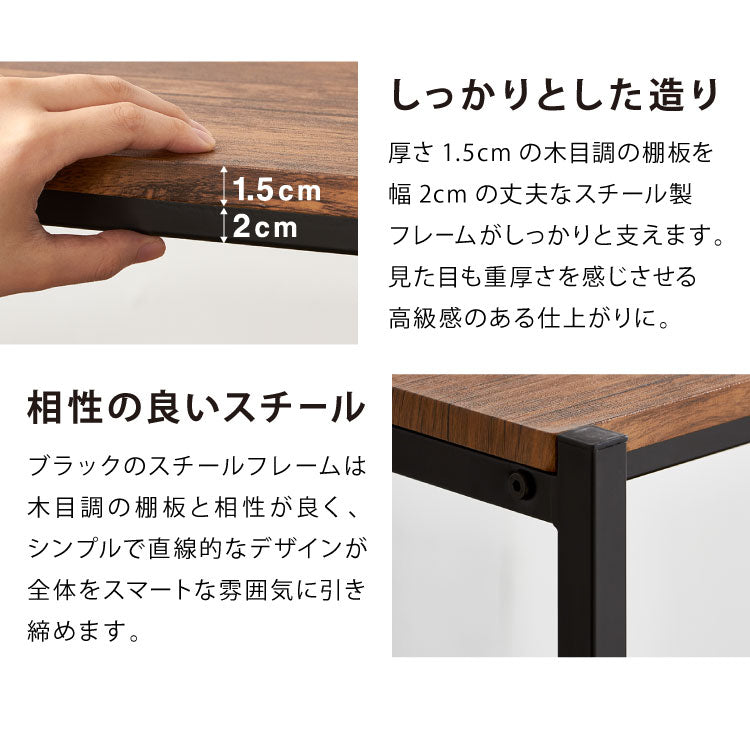 黒いフレームとヴィンテージ調棚板が印象的なブルックリン調の4段シェルフ。