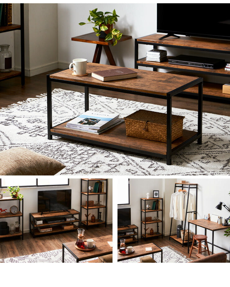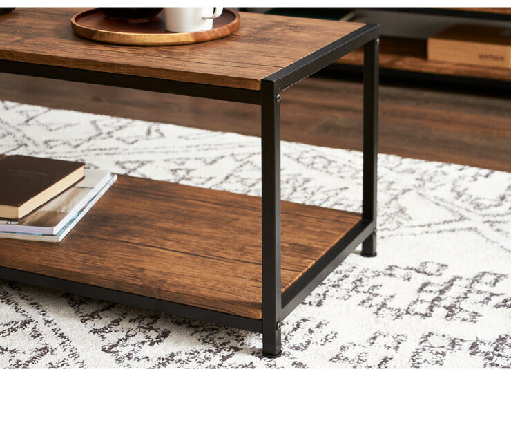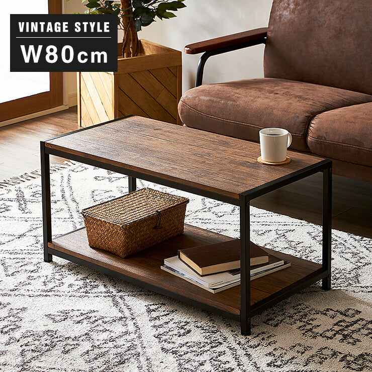 ヴィンテージ コーヒーテーブル センターテーブル ローボード テレビ台 棚付き 2段ラック 収納 オープンラック 茶系 ブラウン シェルフ おしゃれ(代引不可)