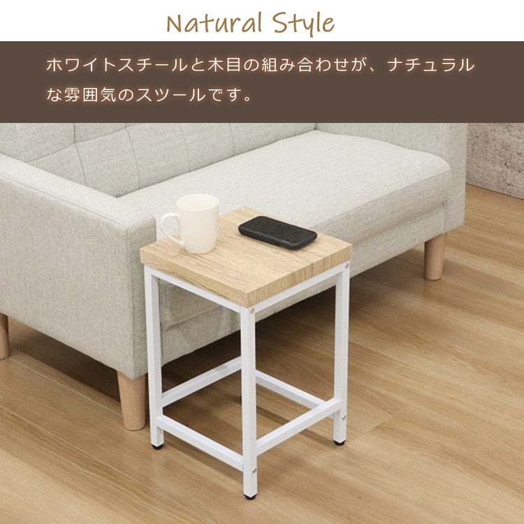スツール 角椅子 おしゃれ 幅30 奥行30 高さ45.5cm PVC コンパクト ナチュラル アジャスター付き 木製×ホワイトスチール サイドテーブル デスク ベット横 玄関(代引不可)
