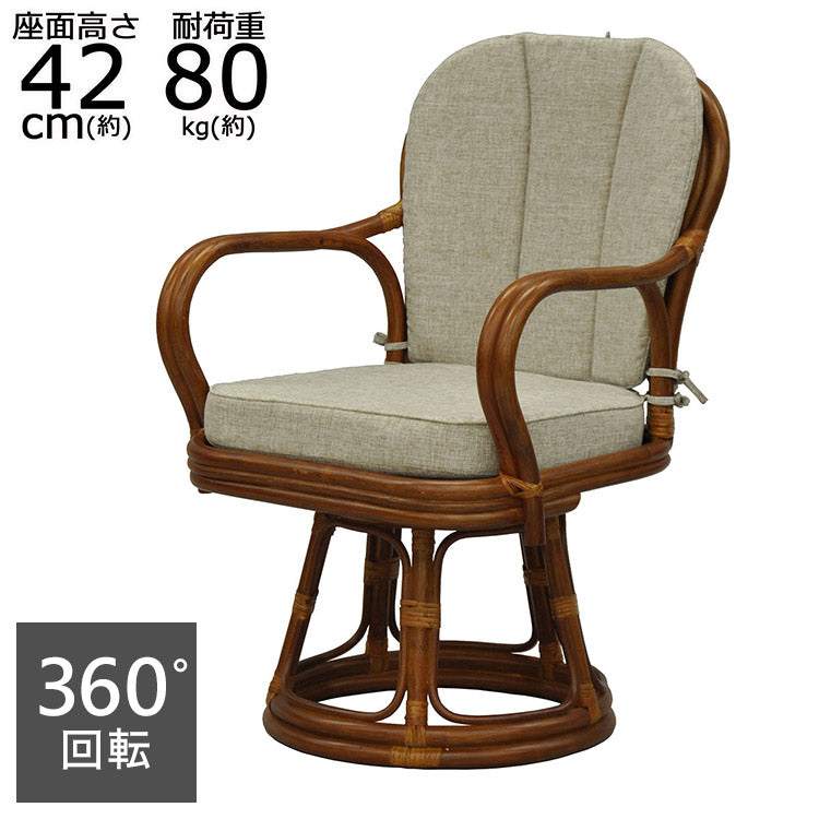 椅子 ラタン チェア 肘掛け付き 回転 ワイドハイタイプ 籐 幅56 奥行60 高さ80cm ラタンチェア 天然素材 丈夫 メッシュ 360度回転 座面低い 軽量 クッション付き 耐久性(代引不可)