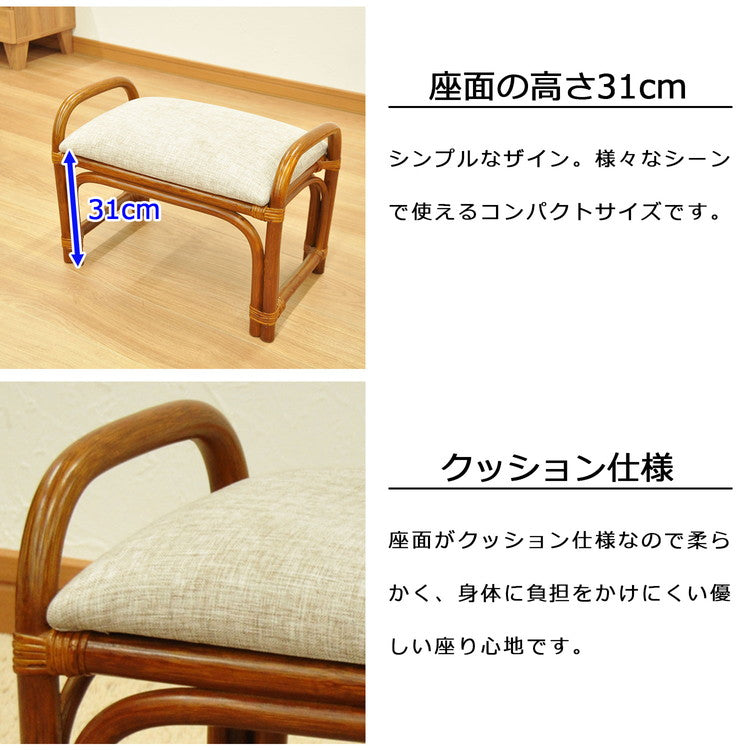椅子 ラタン 籐腰掛椅子 籐椅子 座面高さ31cm 天然素材 丈夫 軽量 コンパクト クッション 取っ手付き 持ち運び 浴室 玄関 客間 耐久性 和風 和室(代引不可)