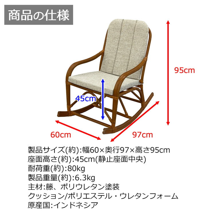椅子 チェア ラタン ロッキングチェアー 揺れる 肘掛け付き 籐椅子 幅60 奥行97 高さ95cm 天然素材 柔軟性 丈夫 軽量 コンパクト ナチュラル 耐久性 通気性 弾力性(代引不可)