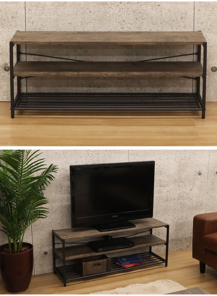 テレビ台 幅100cm バルネ 棚付き 2段 アイアン ブラウン おしゃれ ローボード テレビボード テレビラック TV台 収納 TVボード(代引不可)