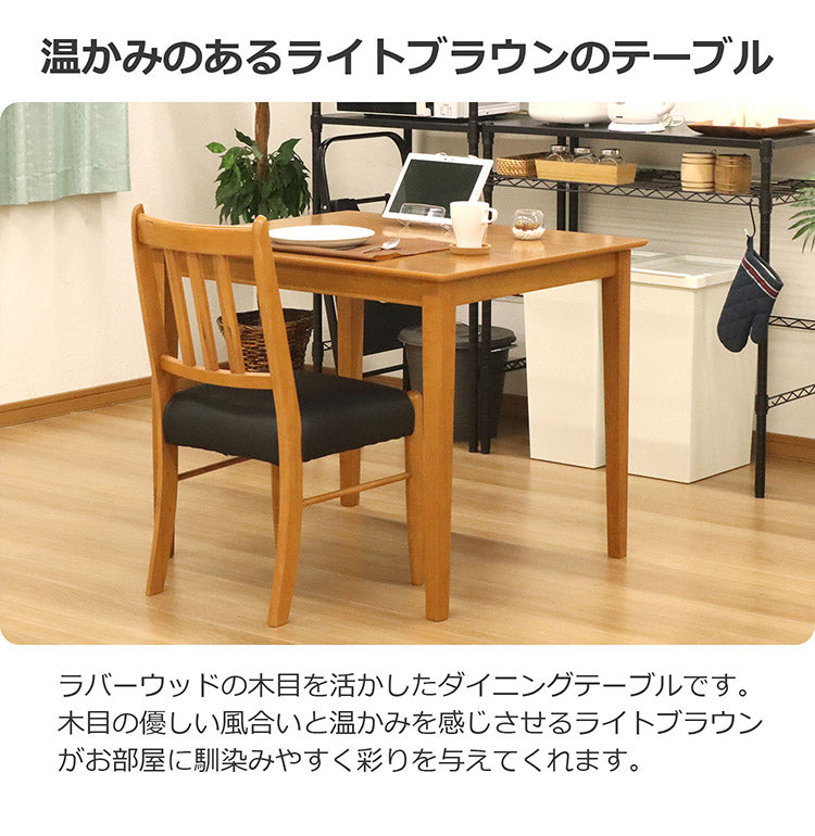 ダイニングテーブル 幅90 ラバーウッド 木目 ライトブラウン 幅90cm 2人掛け ダイニング ウレタン塗装 シンプル 食卓 作業台 テーパー仕様 アジャスター付 組立品(代引不可)