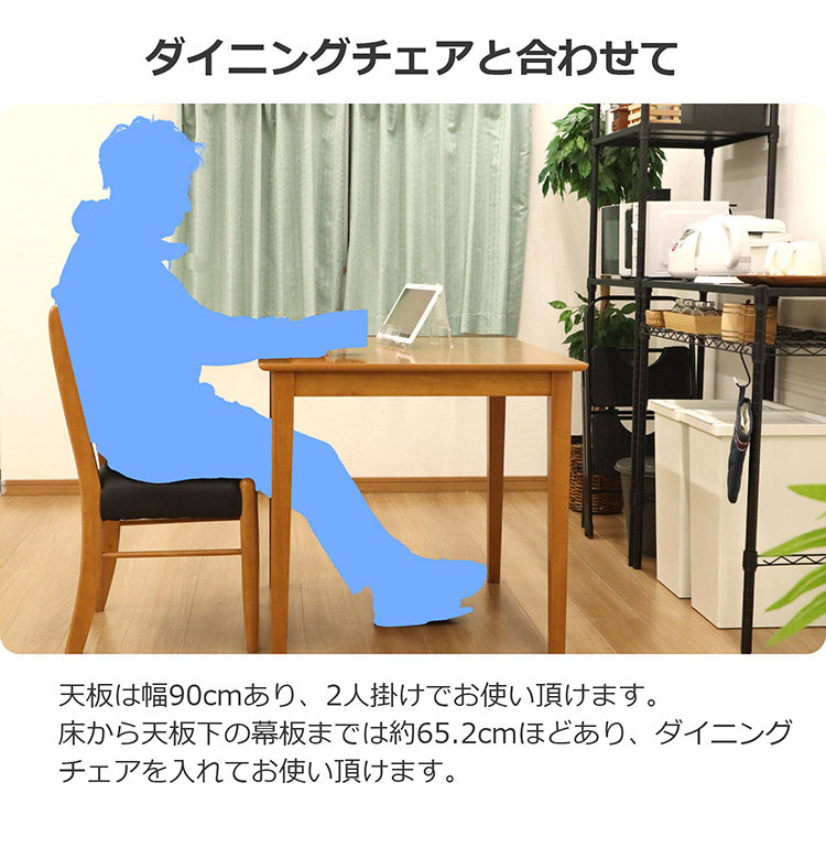 床から天板下の幕板までは約65.2cmほどあり、ダイニングチェアを入れてお使い頂けます。