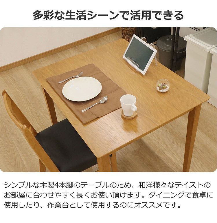 シンプルな木製4本脚のテーブルのため、和洋様々なテイストのお部屋に合わせやすく長くお使い頂けます。