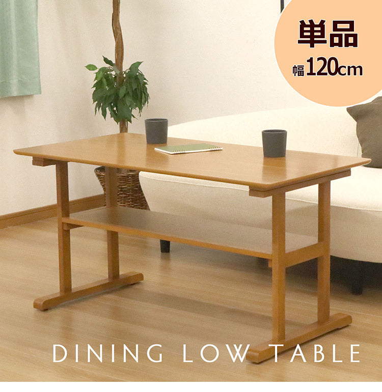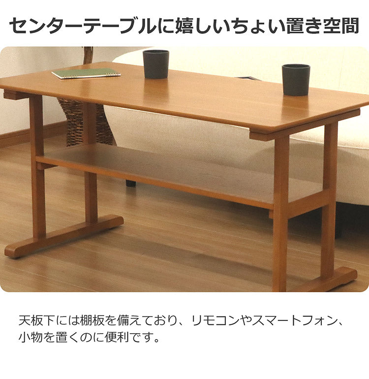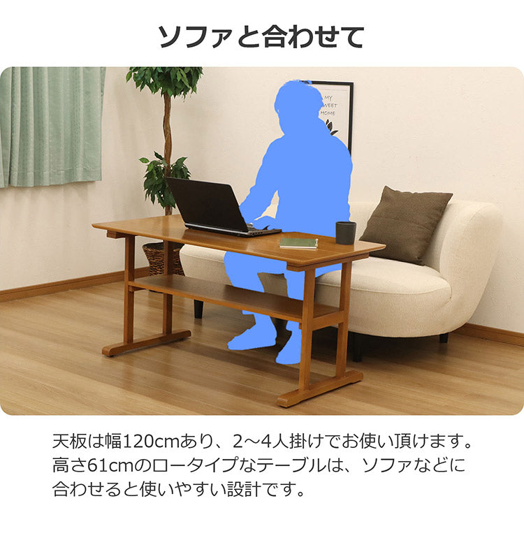 リビングテーブル 幅120 ラバーウッド 木目 センターテーブル ライトブラウン 幅120cm 2~4人掛け 高さ60cm ロータイプ テーブル ソファ 棚板 ウレタン塗装 リビング 座卓 作業台 アジャスター 組立品(代引不可)