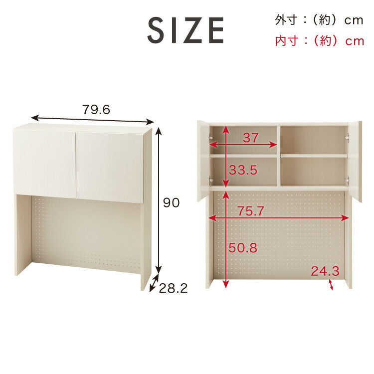 ジェメリ 上棚 食器棚 ジェメリ 上棚 レンジ台 収納台 扉付き 可動棚 食器 小物 収納 有孔ボード スチール製 磁石 キッチン収納 幅80 奥行28 高さ90 組立品(代引不可)