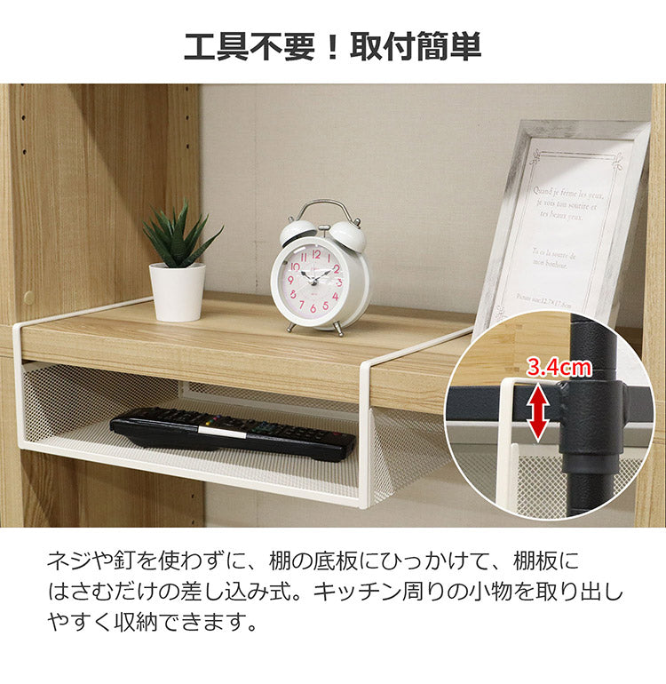組立不要。工具不要。棚板や天板に差し込みだけでOK。