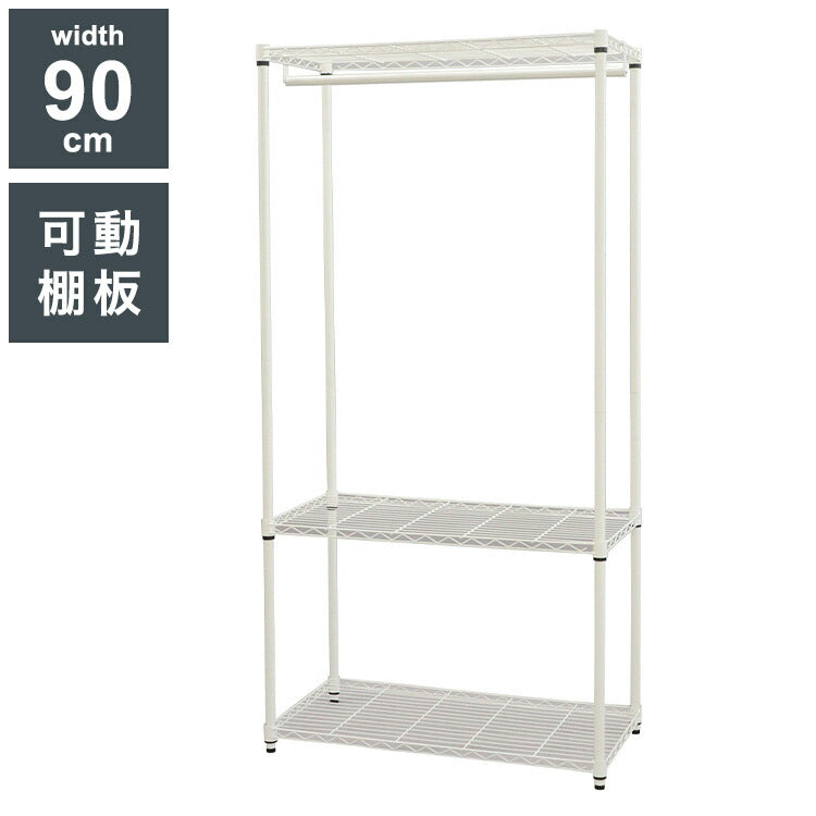ハンガーラック ワードローブ クローゼット 収納棚 ラック 棚付き たっぷり収納 大容量 幅90cm 寝室 収納 洋服 衣類掛け 一人暮らし コートハンガー スチール 棚 奥行45(代引不可)