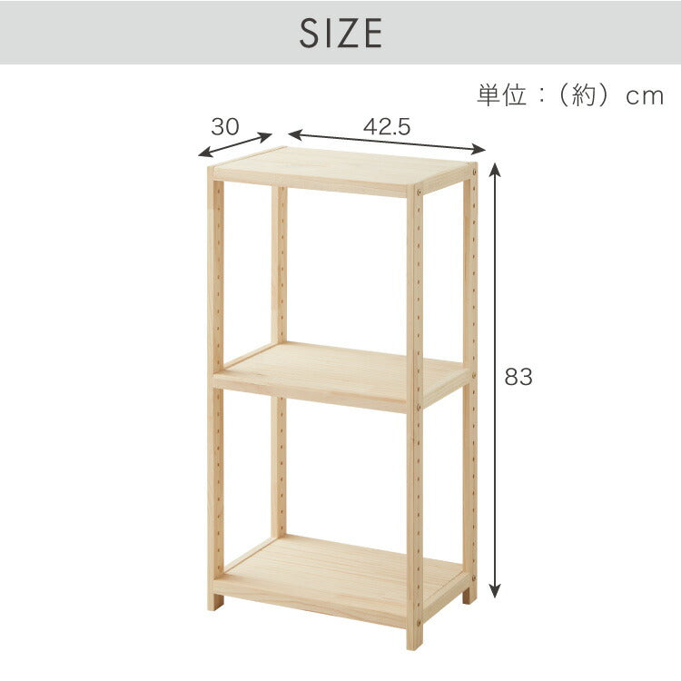 天然木 パインラック 3段 幅42.5 オープンラック 三段 おしゃれ 木目 木製 収納 パイン材 シェルフ 奥行き30 高さ83 北欧 ラック 木目調(代引不可)
