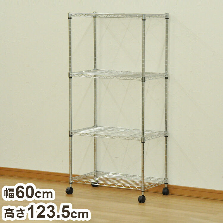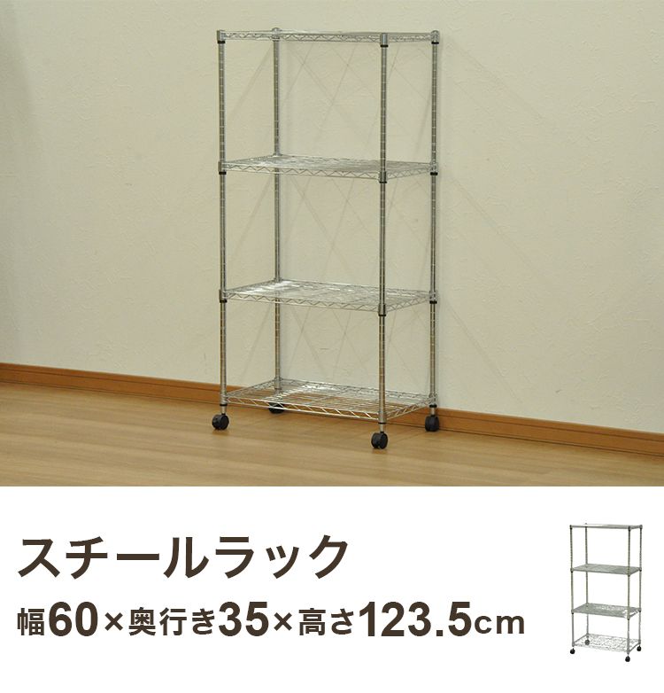 スチールラック 幅60 奥行き35 高さ123.5 シェルフ ワイヤー オープンラック キャスター付き コンパクト リビング スリム ポール径19mm 防サビ 収納(代引不可)