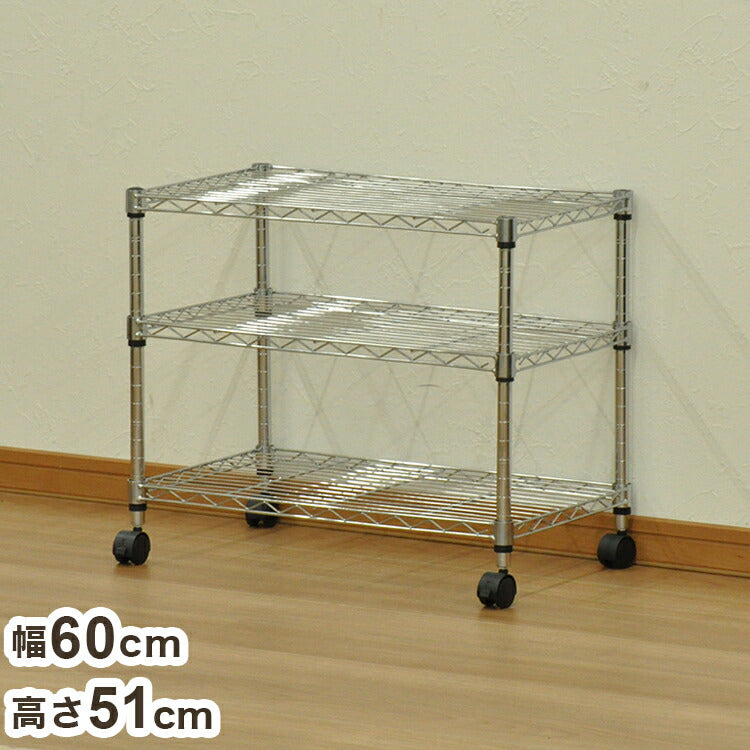 スチールラック 幅60 奥行き35 高さ51 シェルフ ワイヤー オープンラック キャスター付き コンパクト リビング スリム ポール径19mm 防サビ 収納(代引不可)
