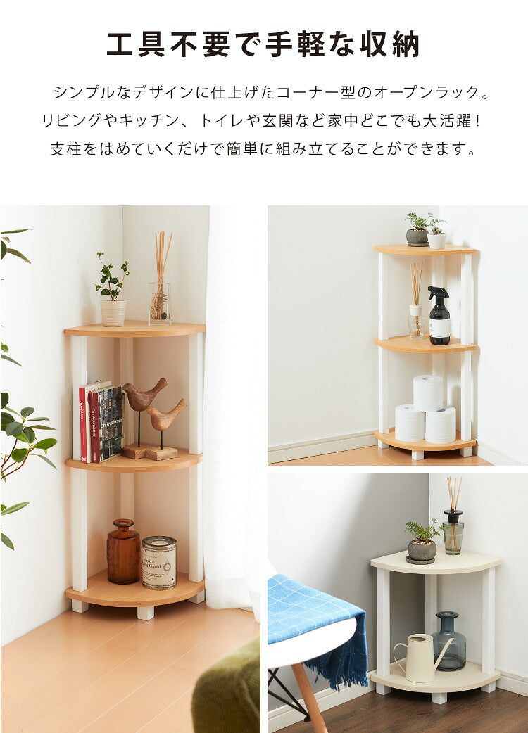 ラック コーナーラック 一段 1段 ラック オープンラック 収納 収納ラック 角収納 コーナー収納 木目調 耐荷重10kg 組み立て簡単 組み立てやすい シェルフ(代引不可)