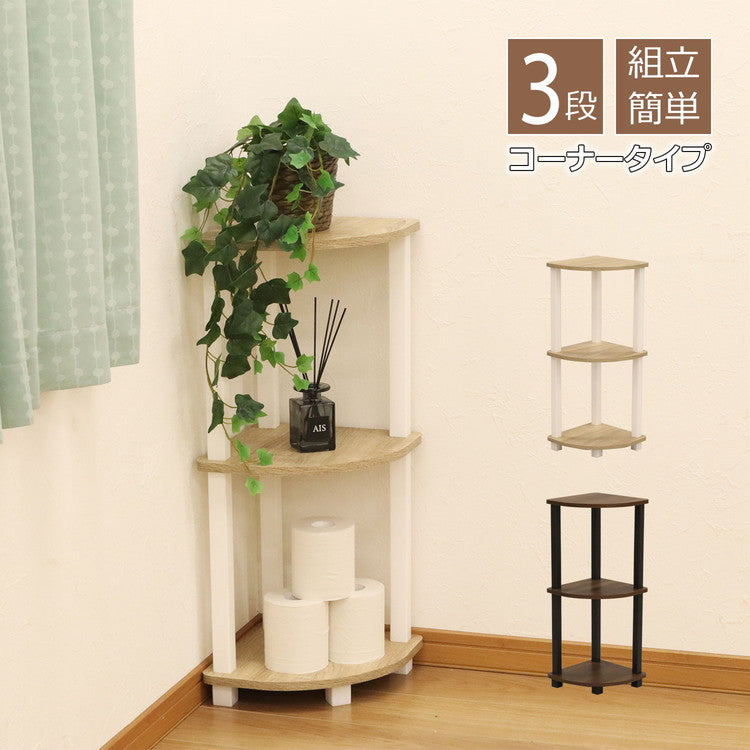 コーナーラック3段 三段 ラック オープンラック 収納 収納ラック 角収納 コーナー収納 木目調 組み立て簡単 組み立てやすい シェルフ リビング収納 ディスプレイラック(代引不可)