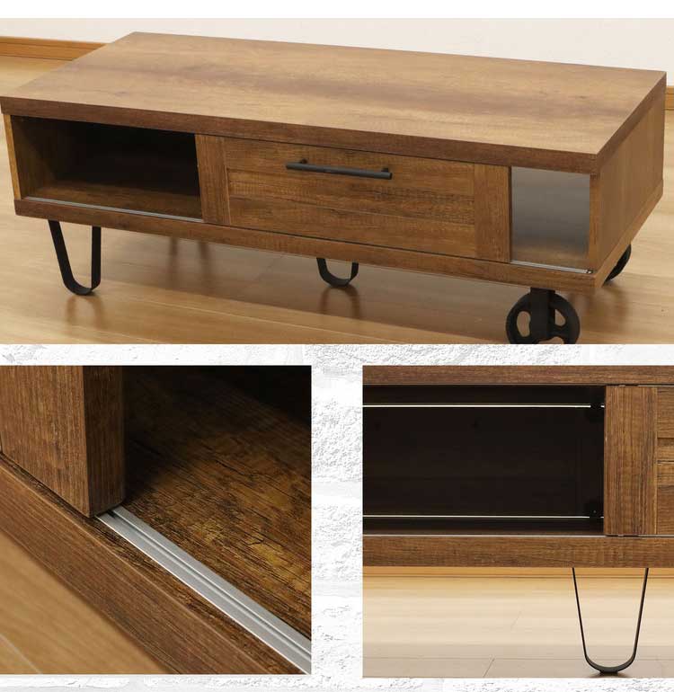センターテーブル テーブル リビングテーブル コーヒーテーブル 机 テーブル 幅120 ブラウン スライド扉 ヴィンテージ インダストリアル ミッドセンチュリー(代引不可)