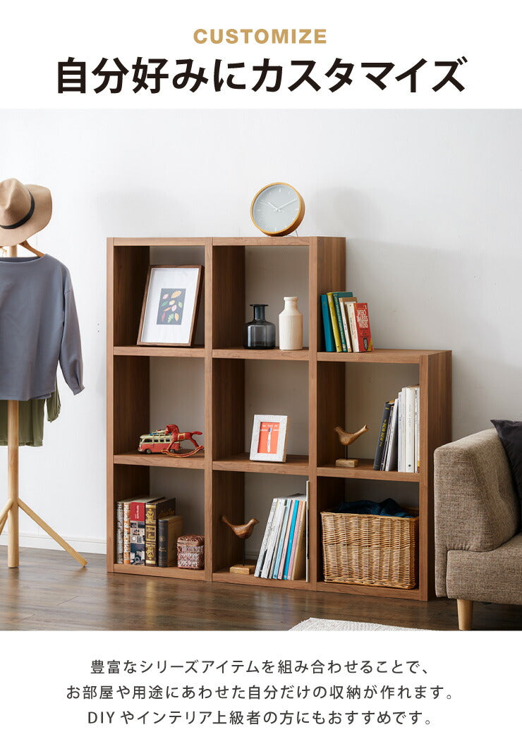 本棚や、衣類収納、壁面収納、リビング収納や仕切りとしてのパーテーションなど様々な使い方ができます。