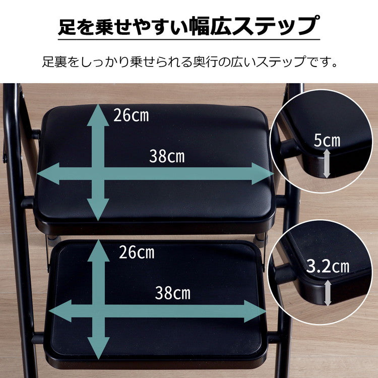 踏み台 折りたたみ クッション付 幅47 奥行52 高さ79cm 軽量 スチール 持ち手付 脚立 はしご 昇降 滑り止め付 幅広ステップ ステップ台 チェア 椅子 おしゃれ ブラック 完成品 SE-4779(代引不可)