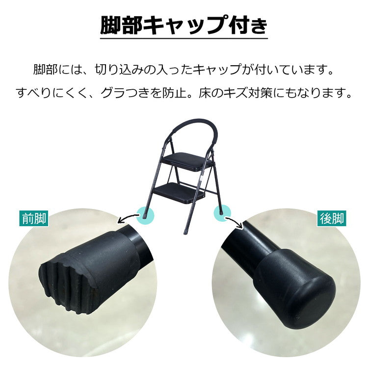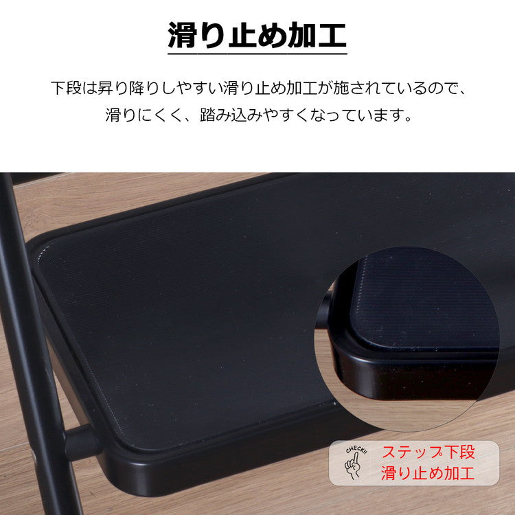 ●ブラック×ブラックスチール色のデザインがお部屋にシンプルになじむ2段タイプの踏み台です。