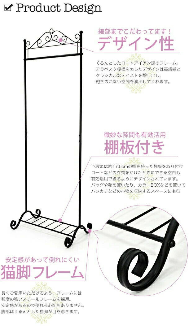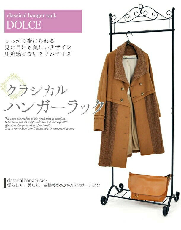 ハンガーラック ドルチェ アイアン ラック 収納ラック オープンラック 衣類収納 アンティーク おしゃれ 収納 服掛け(代引不可)