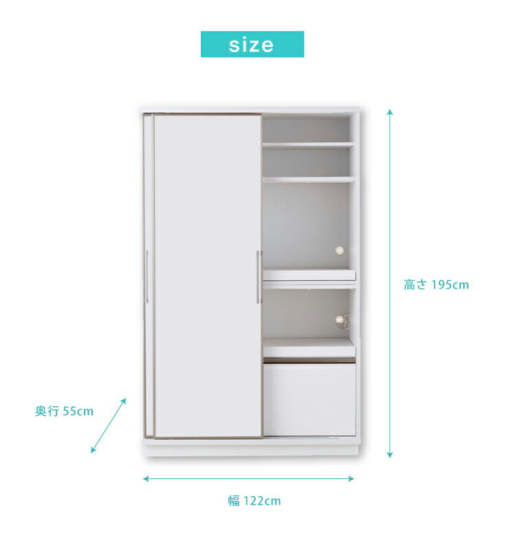 食器棚 両面スライド板戸タイプ モイス付き 幅122cm 高さ195cm 奥行55cm 【大川家具 国産 日本製 開梱設置無料】キッチン収納 ダイニング収納 (代引不可)