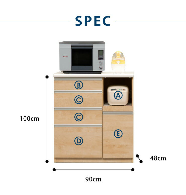 キッチンカウンター 食器棚 幅90cm 高さ100cm モイス付き 【大川家具 完成品 国産】 収納 ハイカウンター 日本製 キッチンボード(代引不可)