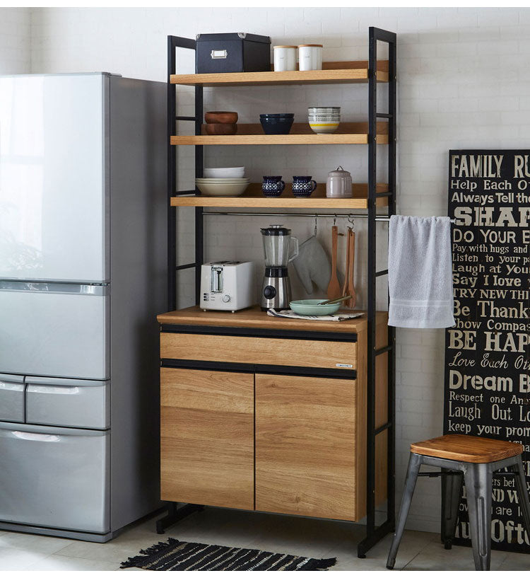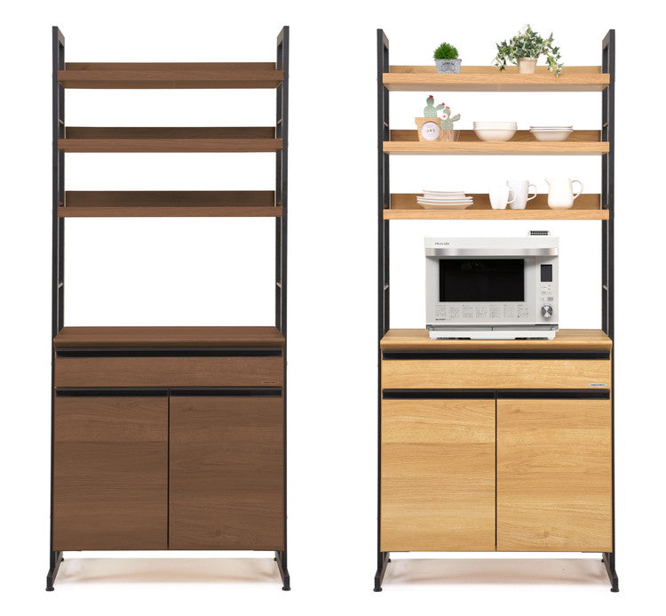 食器棚 キッチンボード 幅84 奥行48 高さ196 木目 引き戸 国産 間仕切り 背面化粧 高さ調節 おしゃれ アイアン レンジ台 レンジボード 大容量 キッチン 収納 ウォールナット オーク(代引不可)
