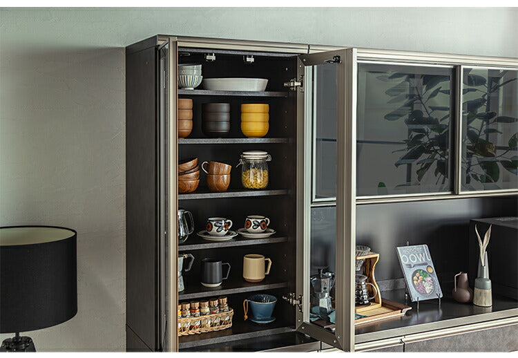 食器棚 幅60cm カップボード ダイニングボード セラミック調 ブラウン ステンレス ダストボックス 収納 引き出し 扉 硝子飛散防止フィルム 新生活 リビング ブラウン ホワイト(代引不可)