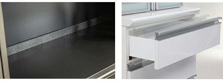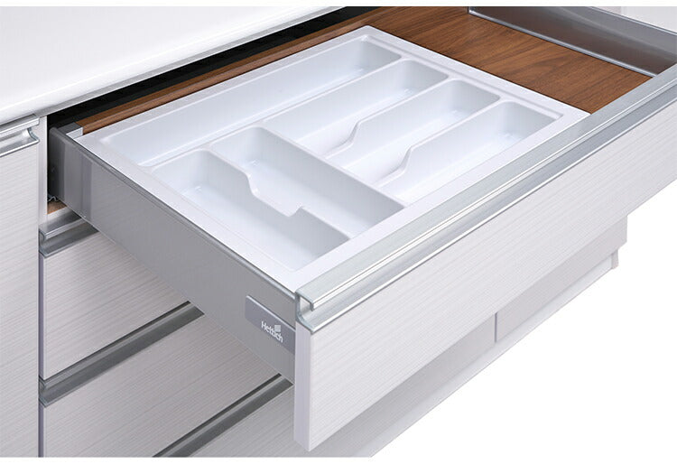 ・引出はソフトクローズ機能付き。(へティヒ社製イノテックレールを使用、耐荷重30kg)