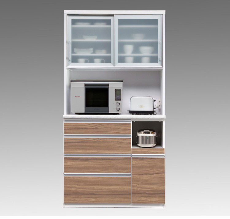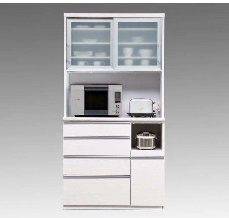 食器棚 キッチンボード 幅105 奥行48 高さ203 完成品 国産 モイス加工 レンジ台 レンジボード 大容量 ソフトクローズ キッチン 収納 木目 フルオープンレール ホワイト 白 キングウッド(代引不可)