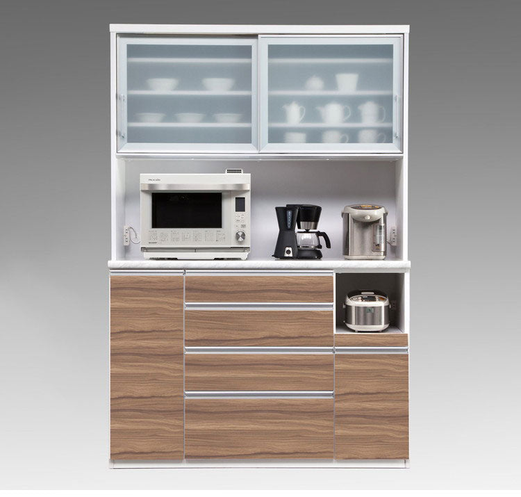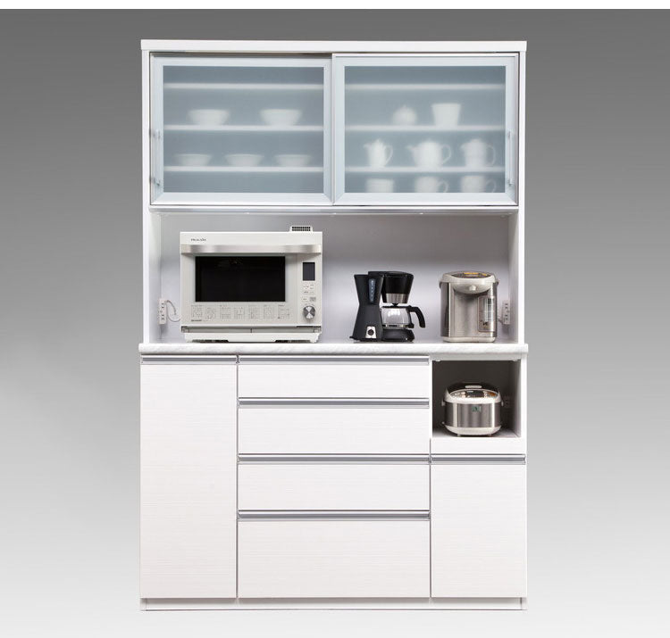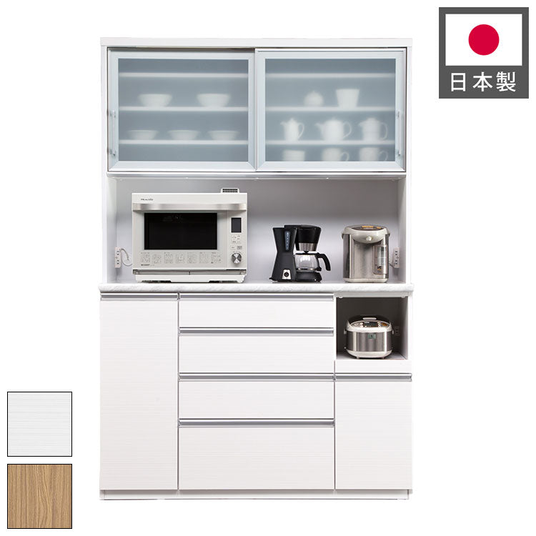 食器棚 キッチンボード 幅140 奥行48 高さ203 完成品 国産 モイス加工 レンジ台 レンジボード 大容量 ソフトクローズ キッチン 収納 木目 フルオープンレール ホワイト 白 キングウッド(代引不可)
