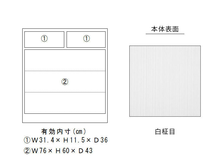 開き戸:幅75.5×奥行43×高さ59.8cm(可動棚2枚)