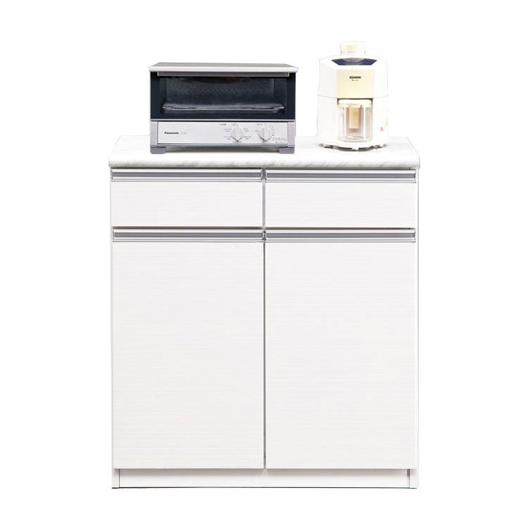 キッチンカウンター 80 間仕切り 観音開きタイプ 石目調天板 完成品 幅80cm 木目 コンセント付き キッチン 収納 ナチュラル 食器棚 テーブル レンジ台 レンジラック 食器棚(代引不可)