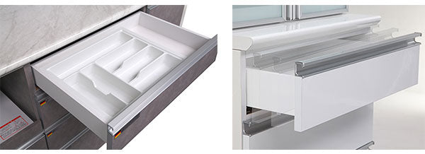 引出は全段ソフトクローズ機能付きです(へティヒ社製イノテックレールを使用、耐荷重30kg)