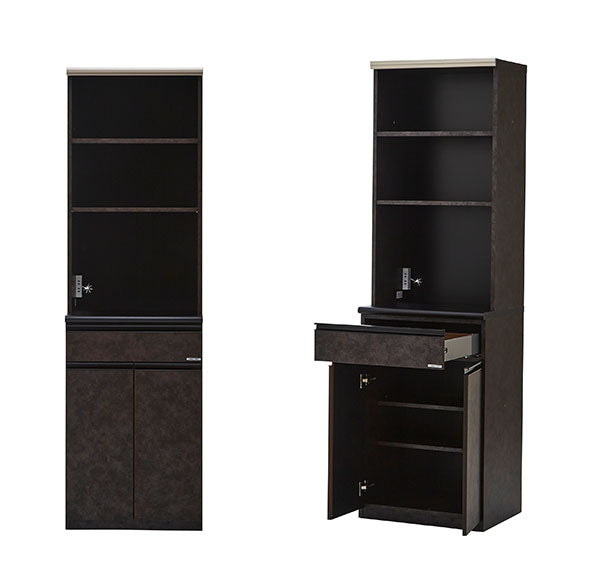 食器棚 レンジ台 キッチンボード 幅60cm 奥行48cm 高さ201.5cm カップボード ダイニングボード 60cm セラミック調 ブラウン 60cm幅 食器家電収納棚 レンジ台 コンセント付(代引不可)
