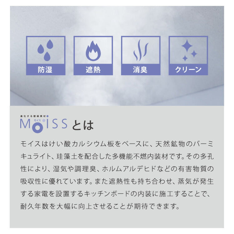■素材:[前面]ホワイト柾目:ハイグロスシート/ブラウン木目:オレフィンEBシート/オーク:強化紙/セラミックグレー:オレフィン化粧フィルム