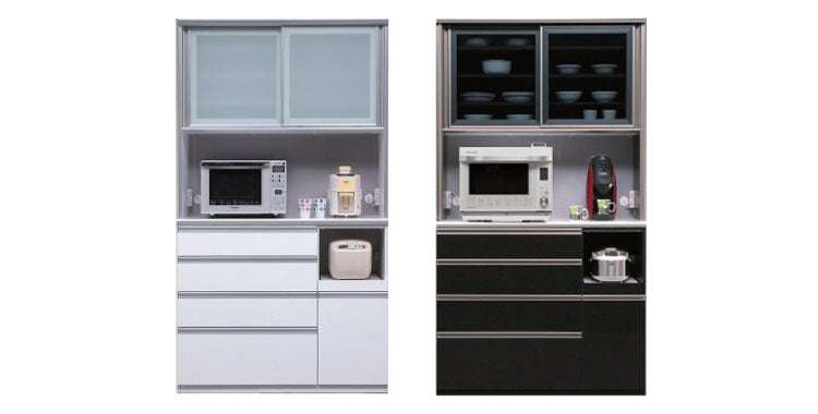 食器棚 キッチンボード 幅120 奥行48 高さ201.5 完成品 国産 モイス加工 レンジ台 レンジボード 大容量 ソフトクローズ キッチン 収納 木目 フルオープンレール ホワイト 白 ブラック(代引不可)