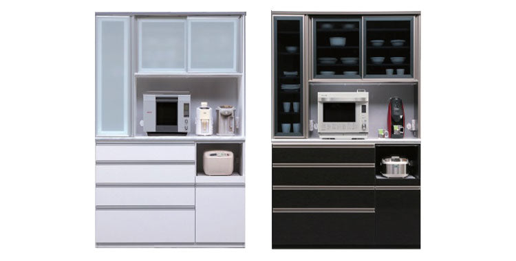 食器棚 キッチンボード 幅130 奥行48 高さ201.5 完成品 国産 モイス加工 レンジ台 レンジボード 大容量 ソフトクローズ キッチン 収納 木目 フルオープンレール ホワイト 白 ブラック(代引不可)