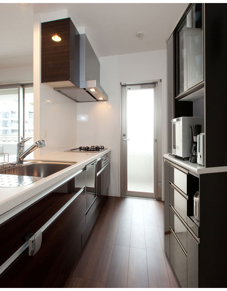 上台に開き戸収納があるのでコップ・グラス類の収納に便利です。