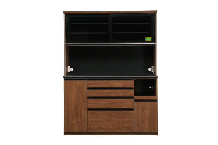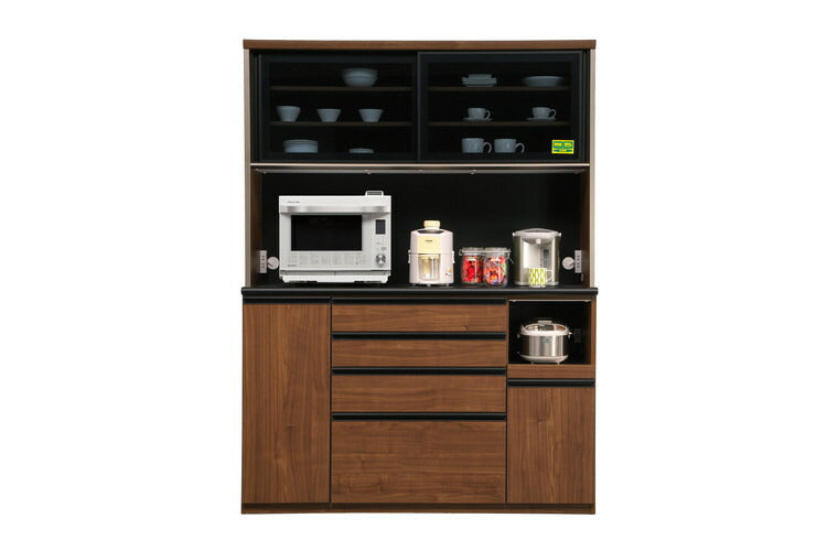 食器棚 キッチンボード 幅150 奥行48 高さ198 完成品 国産 モイス加工 レンジ台 レンジボード 大容量 ソフトクローズ キッチン 収納 木目 フルオープンレール ブラック ウォールナット(代引不可)