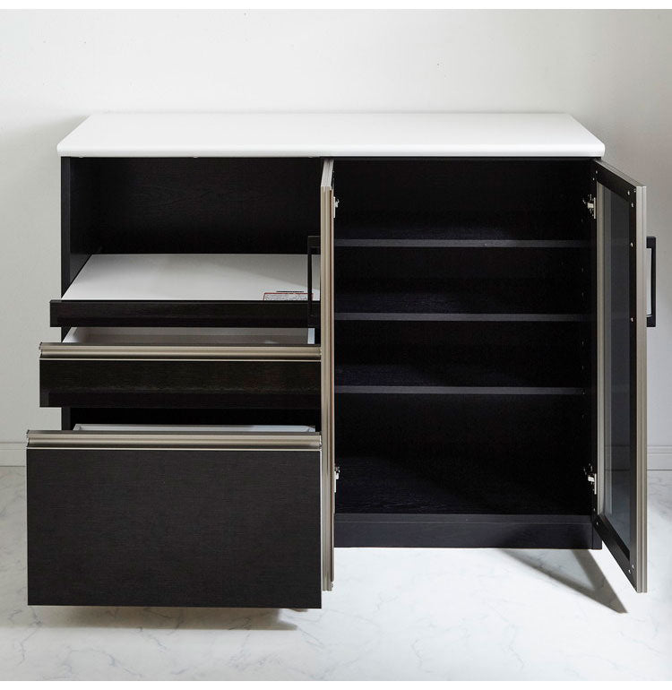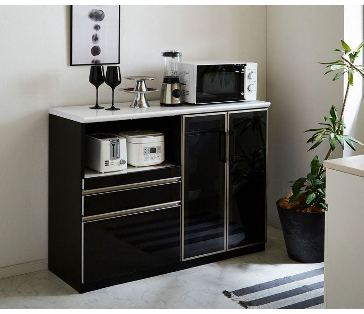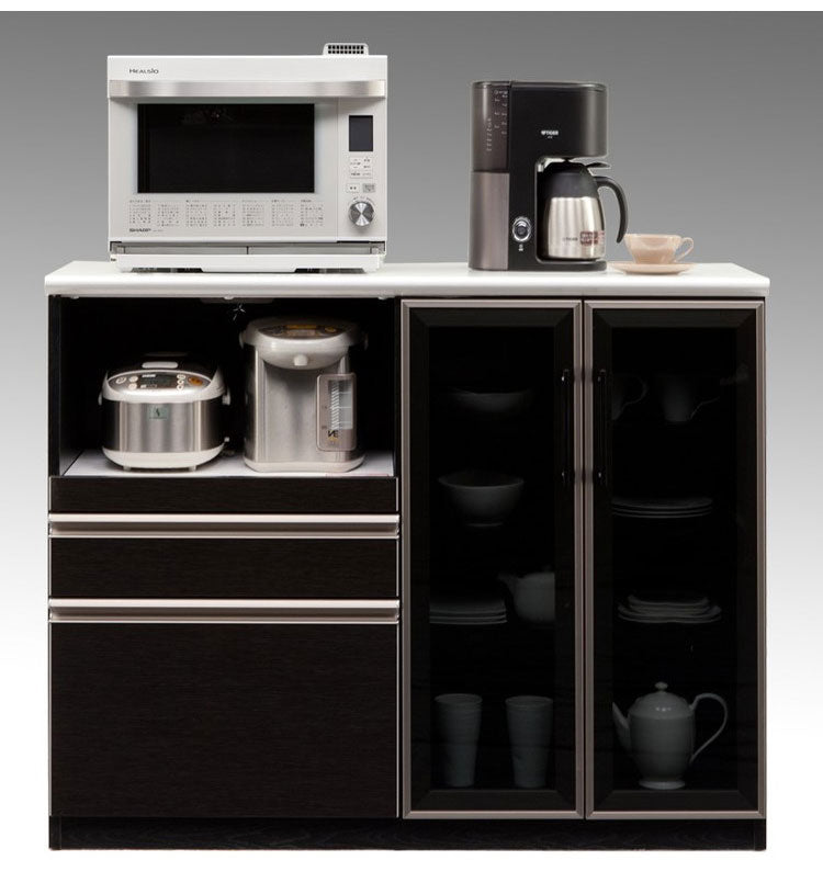 キッチンカウンター 120 間仕切り 完成品 幅120cm 木目 コンセント付き キッチン 収納 ホワイト ブラック 食器棚 テーブル レンジ台 レンジラック 食器棚(代引不可)