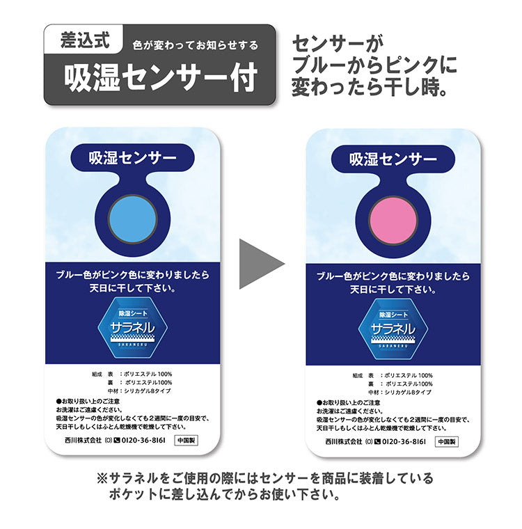 除湿シート サラネル シングル 90×180cm 西川 吸湿センサー付 吸湿 消臭 防カビ 防ダニ シリカゲル 除湿マット 除湿パッド 除湿 梅雨 SARANERU nishikawa シート マット パッド 湿気 ブルー