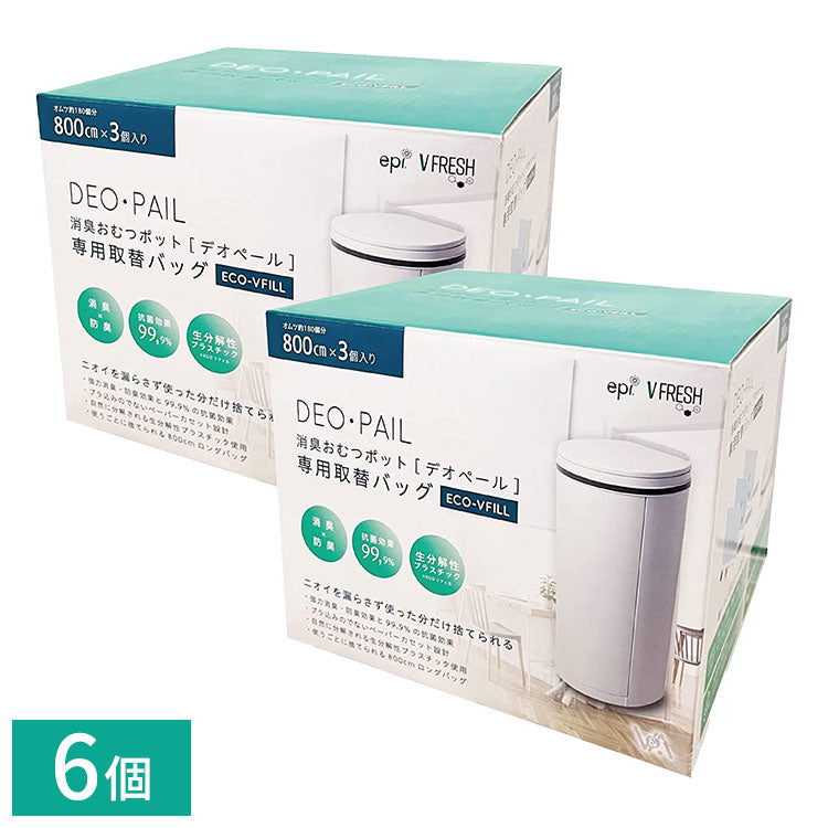 おむつ処理用ゴミ袋 詰替レフィル 6個入り 消臭おむつゴミ箱用 詰替カセット 臭わない 防臭 消臭 抗菌 約40回分×6個入り DEO・PAIL デオペール (代引不可)
