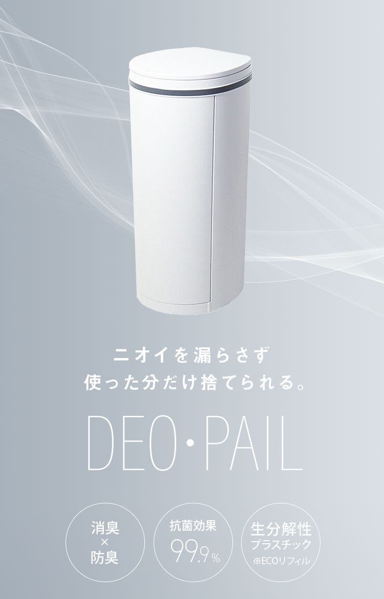 赤ちゃんのおむつのにおい対策に専用ゴミ箱「デオペール」。
