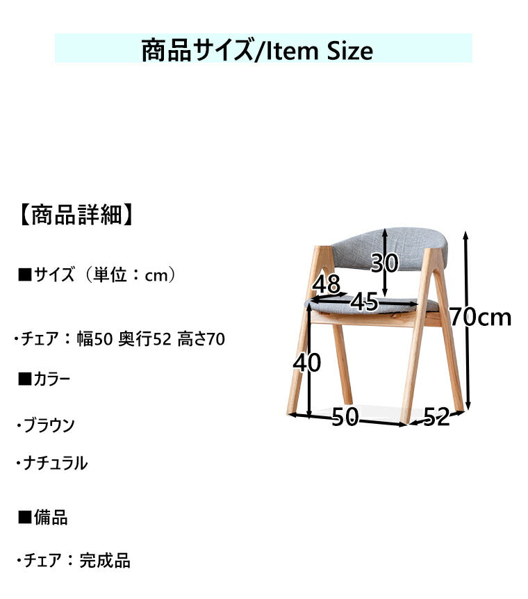 幅50×奥行52(座面奥行48)×高さ70(座面高さ40)cm