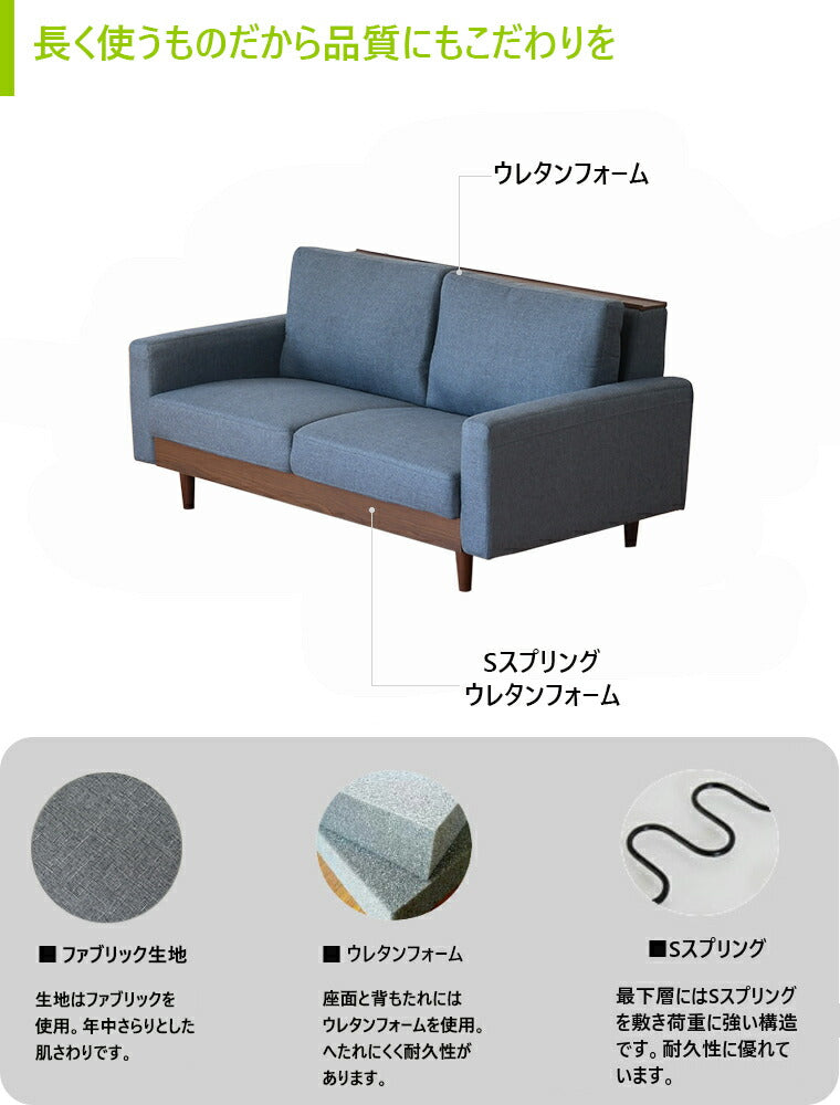 ソファ 2人掛け 幅165 収納 ソファー グレー ブルー 2.5人掛け 2P ファブリック おしゃれ 北欧 コンパクト リビング ナチュラル(代引不可)